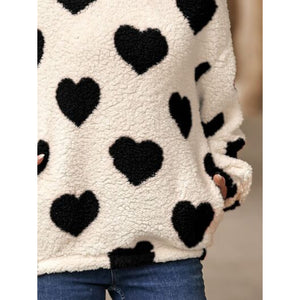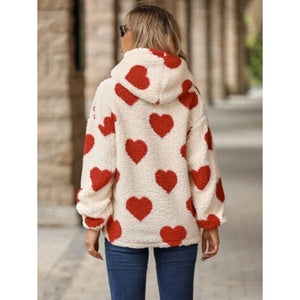 Fuzzy Heart Pocketed Dropped Shoulder Hoodie