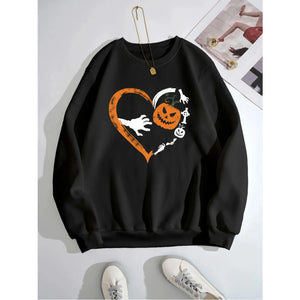 Halloween Heart Pumpkin Round Neck Sweatshirt