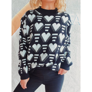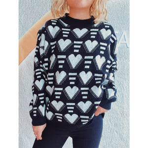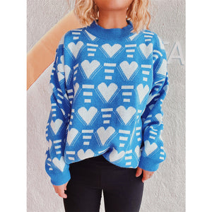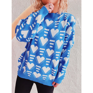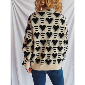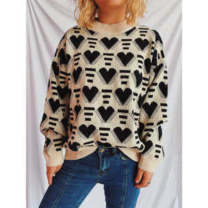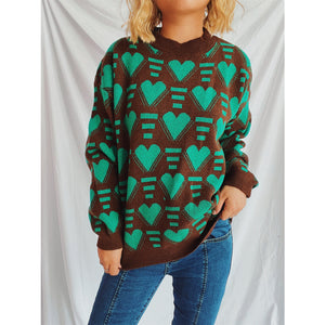 Heart Contrast Long Sleeve Dropped Shoulder Sweater