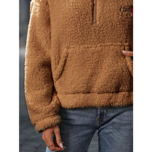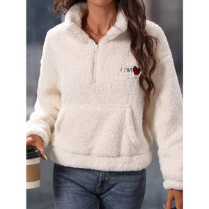 Heart Half Zip Long Sleeve Teddy Sweatshirt