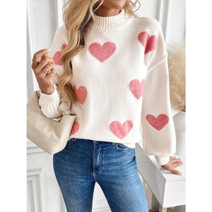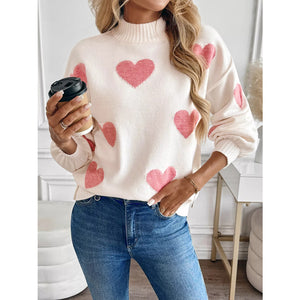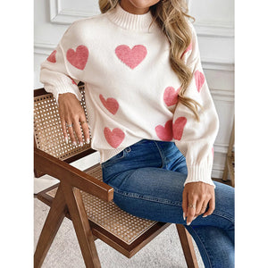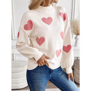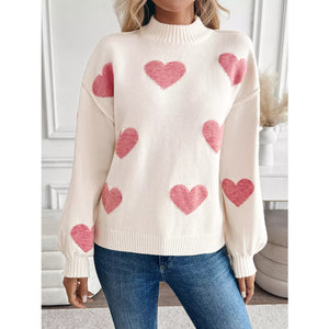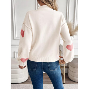 Heart Mock Neck Long Sleeve Sweater