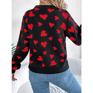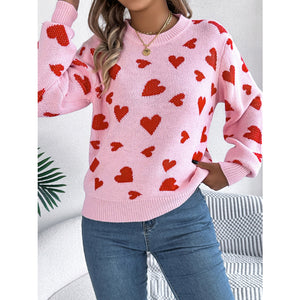Heart Round Neck Long Sleeve Sweater