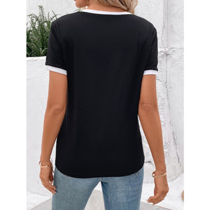 Heart Round Neck Short Sleeve T-Shirt