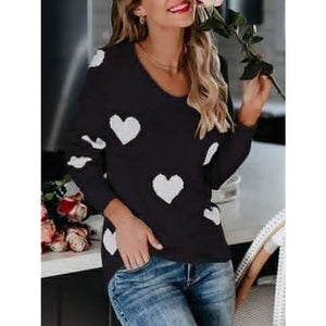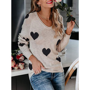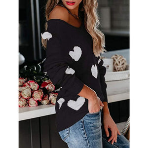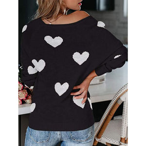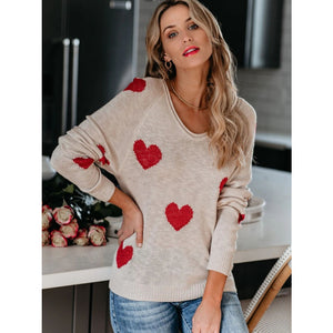 Heart Scoop Neck Long Sleeve Sweater
