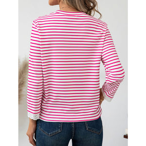 Heart Striped Round Neck Long Sleeve T-Shirt