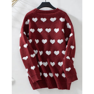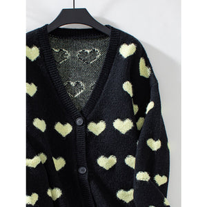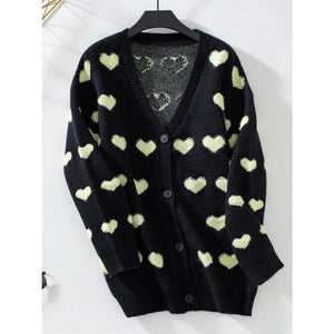 Heart V-Neck Button Up Long Sleeve Cardigan