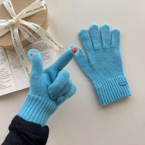 Knitted Solid Color Gloves