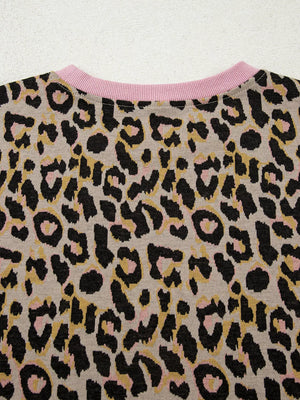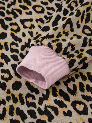 Leopard Print Contrast Edge Long Sleeve Pullover Shorts Set