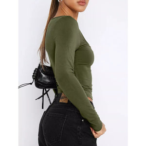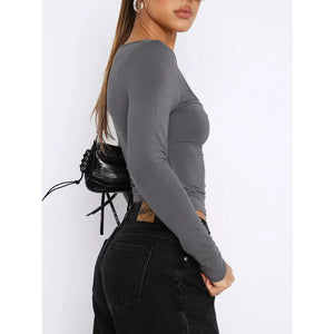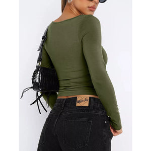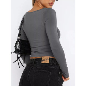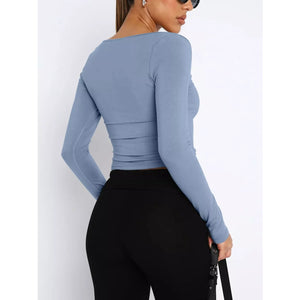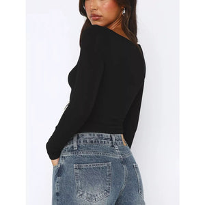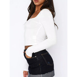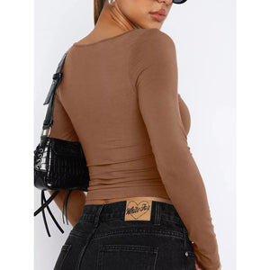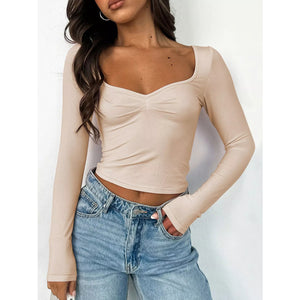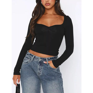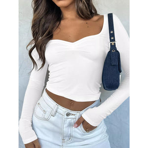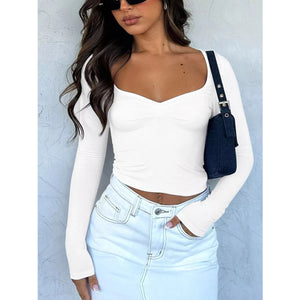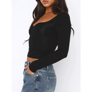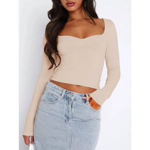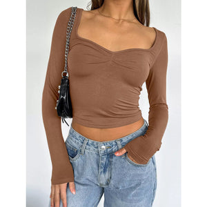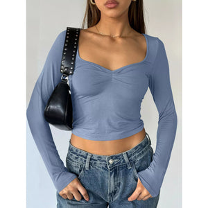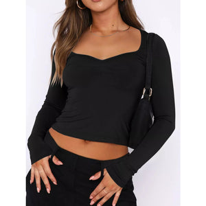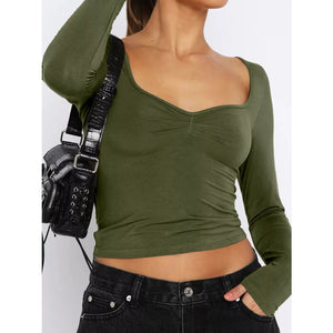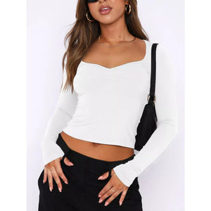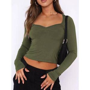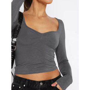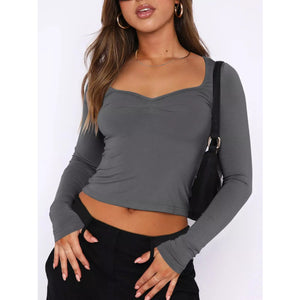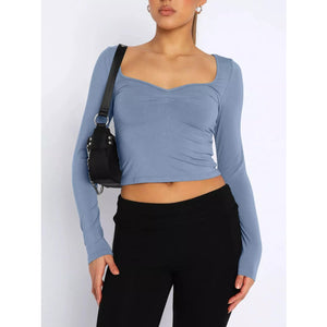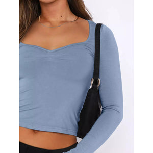 Long Sleeve Sweetheart Neck Crop T-Shirt