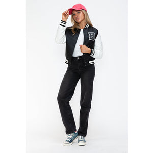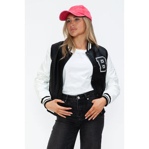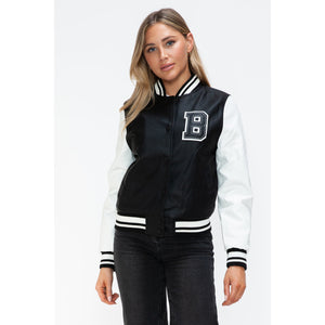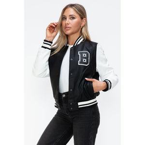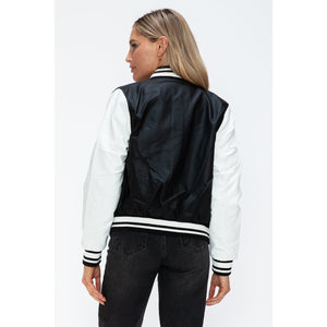 Love Me Now PU Leather Contrast Snap Down Bomber Jacket