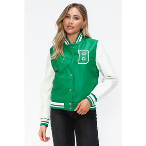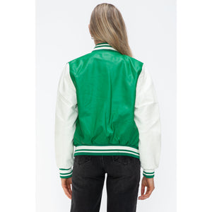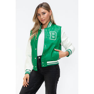 Love Me Now PU Leather Contrast Snap Down Bomber Jacket