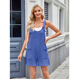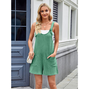 Lovelet Knotted Wide Strap Scoop Neck Overalls