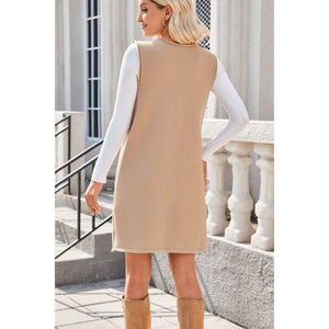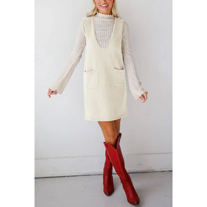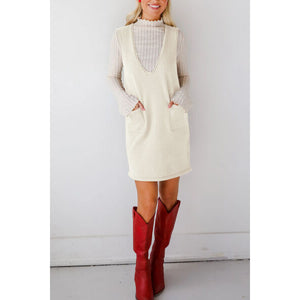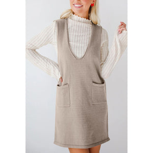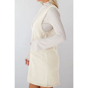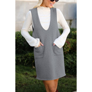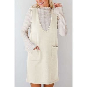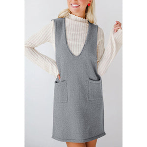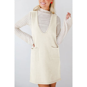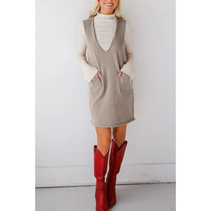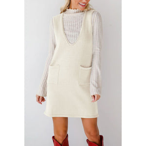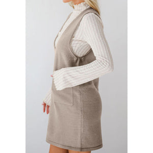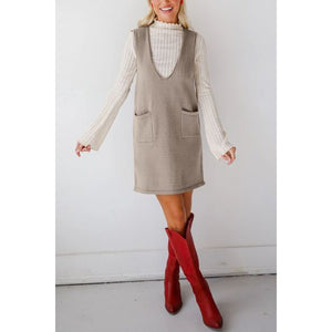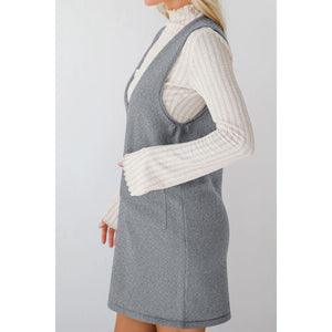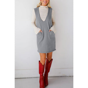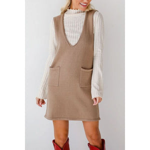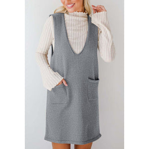 Lovelet Pocketed V-Neck Mini Sweater Overall Dress