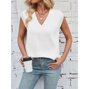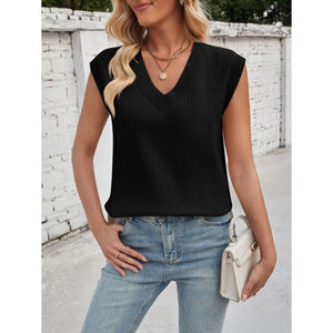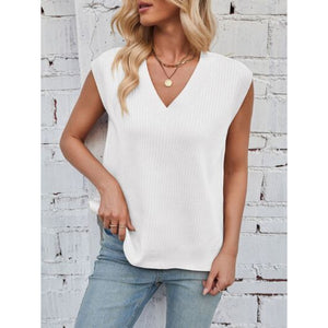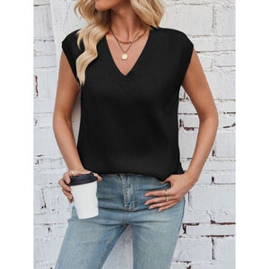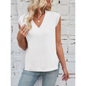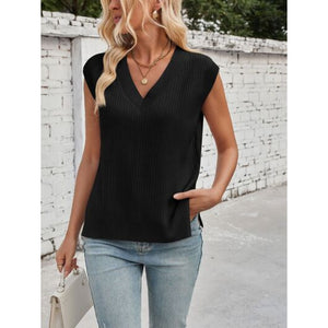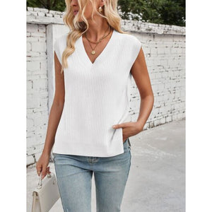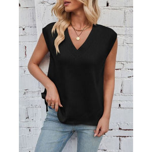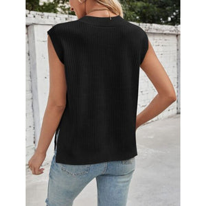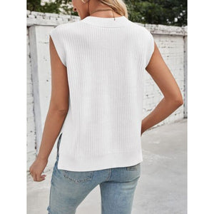 Lovelet Ribbed Slit V-Neck Sweater Vest