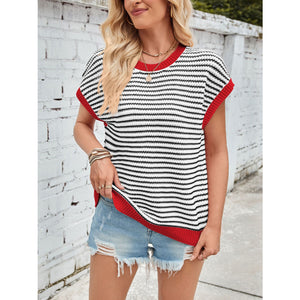 Lovelet Striped Round Neck Cap Sleeve Sweater