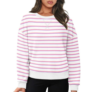 Lovelet Striped Round Neck Long Sleeve Sweatshirt