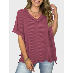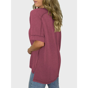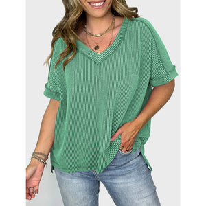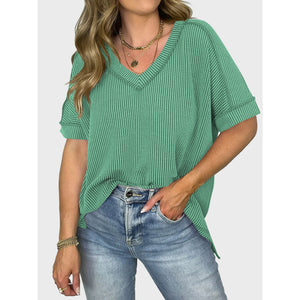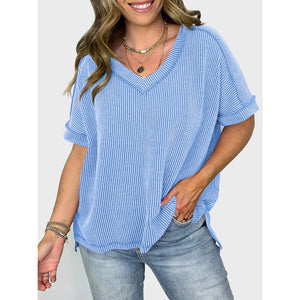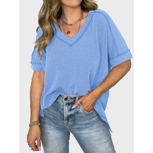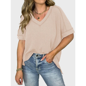 Lovelet Texture V-Neck Half Sleeve T-Shirt