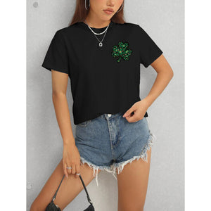 Lucky Clover Round Neck Short Sleeve T-Shirt