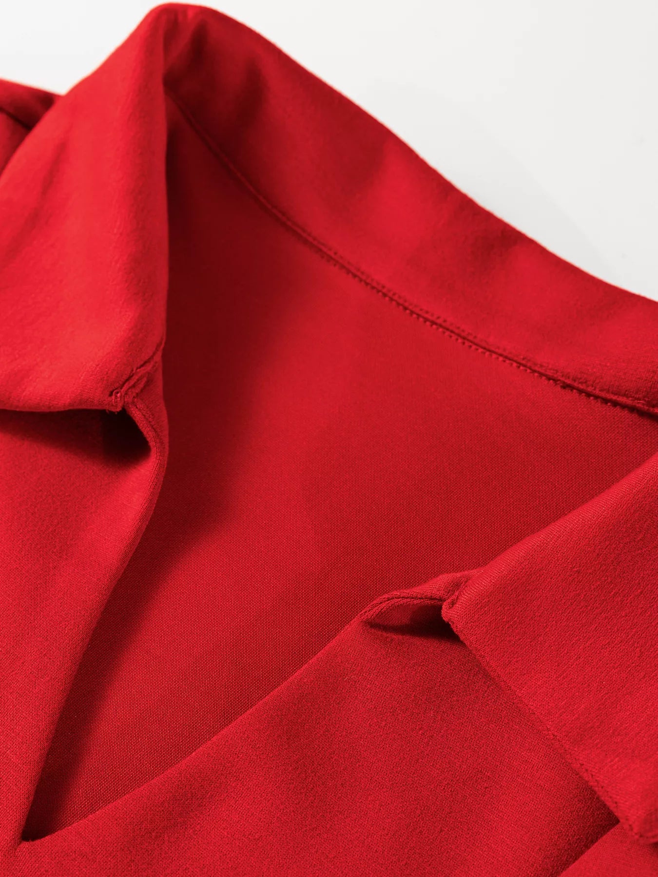 Polo Collar V Neck 3/4 Sleeve Pullover Drawstring Bell Bottom Pants 2pcs Set
