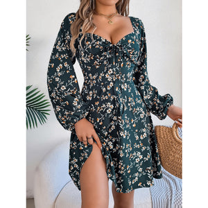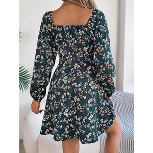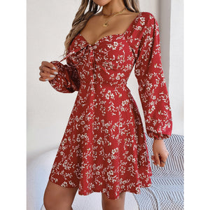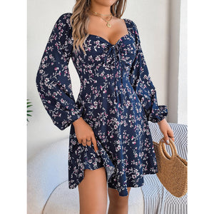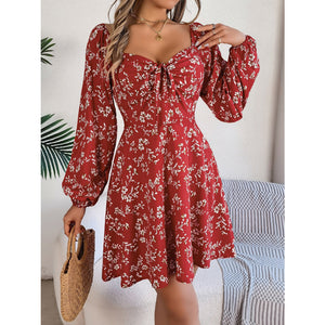 Printed Sweetheart Neck Balloon Sleeve Mini Dress