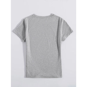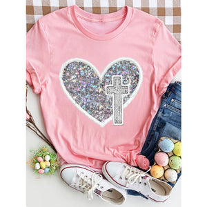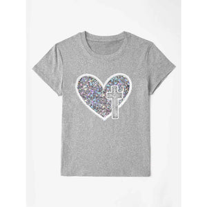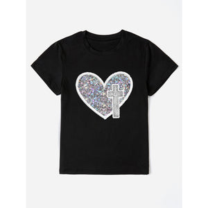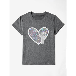 Sequin Heart Round Neck Short Sleeve T-Shirt
