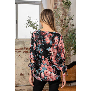 Sew In Love Full Size Floral V-Neck Top with Sleeve Knot
