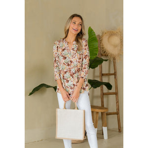 Sew In Love Full Size Wrinkle-Free Floral Notched Top