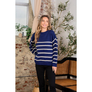 Sew In Love Striped Round Neck Sweater