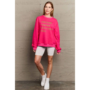 Simply Love Full Size COUNTDOWNS CHAMPAGNE RESOLUTIONS & CHEER Round Neck Sweatshirt