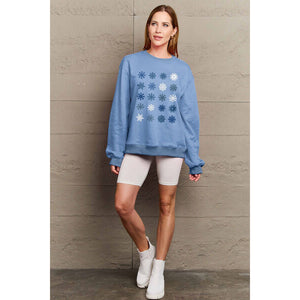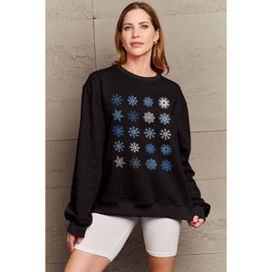 Simply Love Full Size Snowflakes Round Neck Sweatshirt