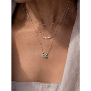 Stainless Steel Zircon Lucky Clover Pendant Necklace