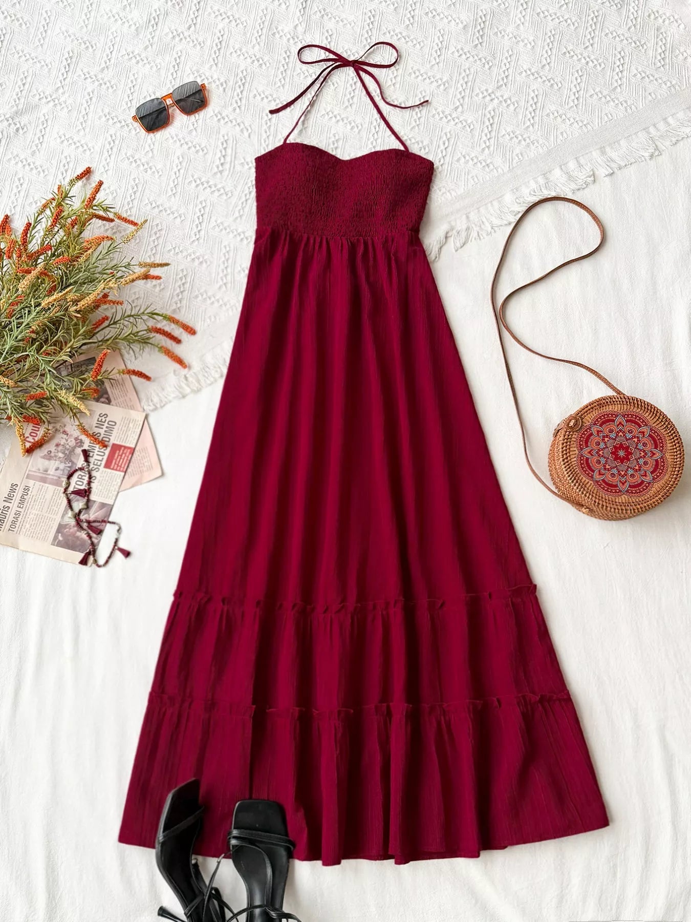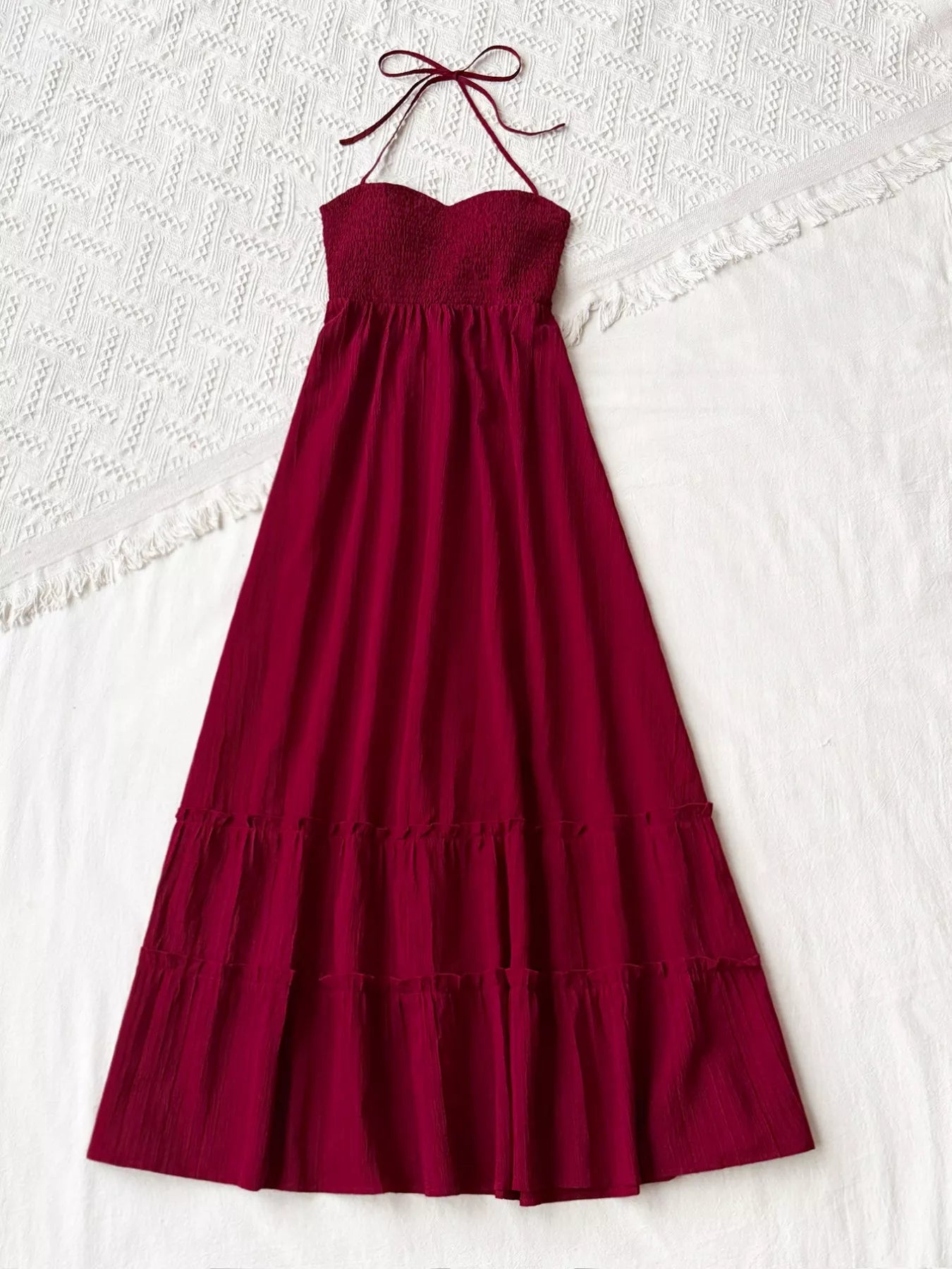 Sweetheart Neck Halter Neck Tiered Dress