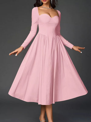 Sweetheart Neckline Long Sleeve A-Line Midi Dress