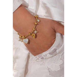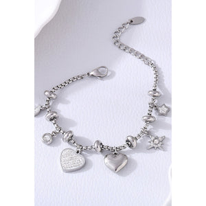 Titanium Steel Inland Zircon Heart Charm Bracelet