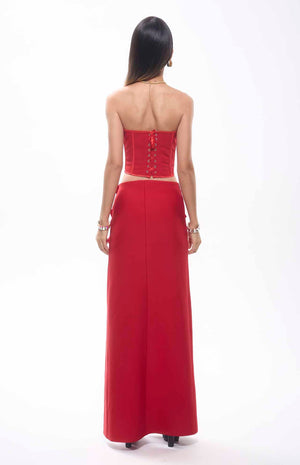 A bold red bandage fabric piece with a sweetheart neckline and lace-up back. Ideal for statement looks, this high-quality corset offers a perfect match for a dramatic style. This strapless corset features a flattering sweetheart neckline, structured boning for a cinched silhouette, and a lace-up back for a customizable fit. Perfect for creating a statement look at events like galas, parties, or fashion-forward gatherings, this high-quality corset ensures a perfect match when paired with a chic skirt or pants, offering a dramatic, feminine style that captivates.