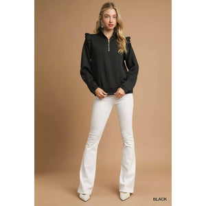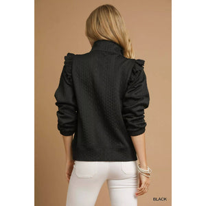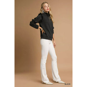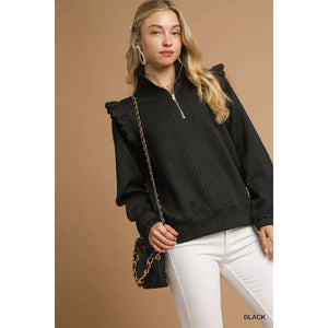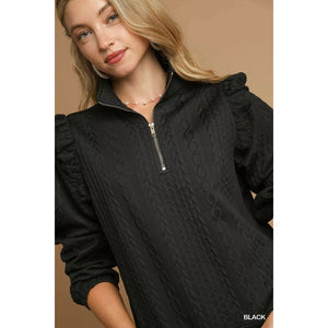 Umgee Cable Knit Textured Pullover with Ruffle Shoulders