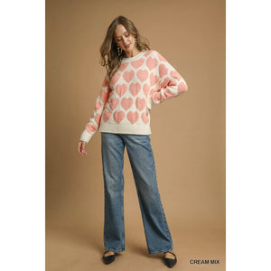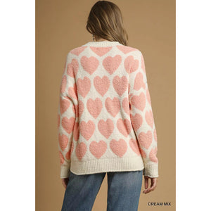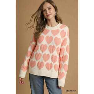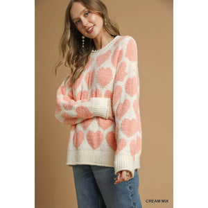 Umgee Mix Heart Pattern Pearl Accent Sweater