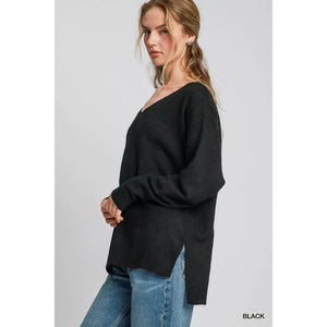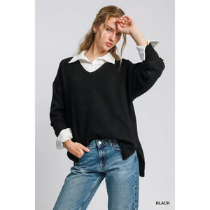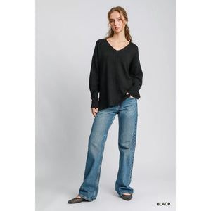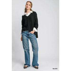 The Wool Blended Pullover Sweater is a cozy and stylish addition to your winter wardrobe. Made from a blend of wool, it offers warmth and softness. The V-neckline adds a touch of sophistication to the design. With a loose fit, this sweater provides a relaxed and comfortable feel. The cut edges give it a unique and modern look. Stay chic and warm with this knit pullover sweater featuring a blend of wool for a cozy and fashionable winter outfit.