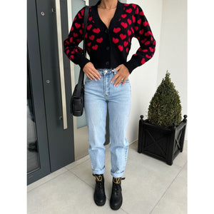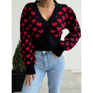 Valentine’s Day Heart V-Neck Cropped Cardigan