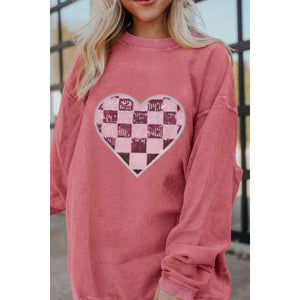 Valentine’s Day Sequin Checkered Heart Long Sleeve Sweatshirt