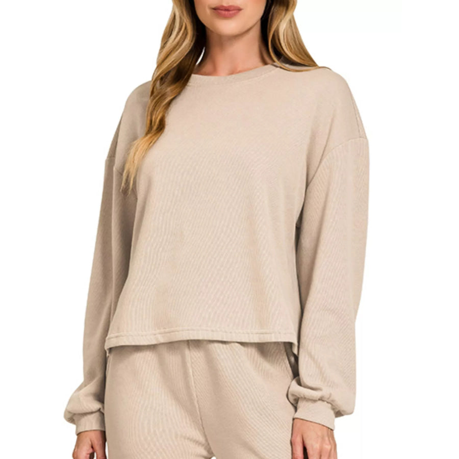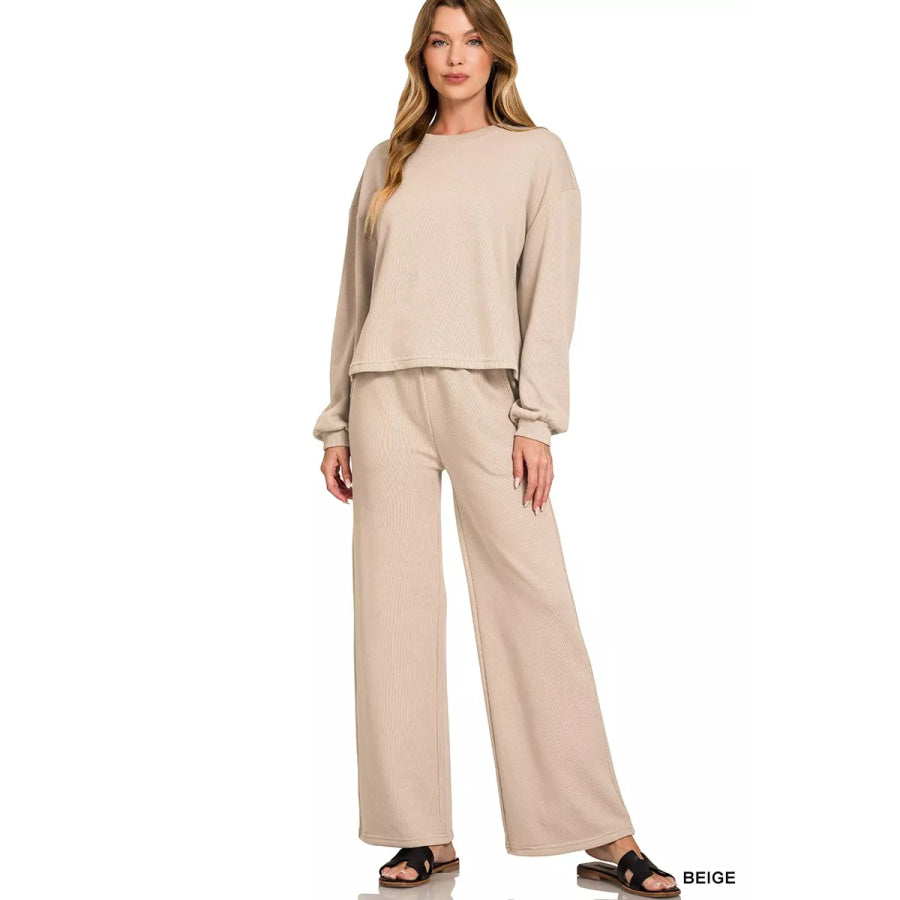 Elevate your loungewear collection with this stylish French rib pullover and pants set. The unique ribbed texture adds a touch of sophistication to this cozy set. Perfect for relaxed days at home or running errands in style. The matching pullover and pants make dressing effortlessly chic and put-together. Enjoy the comfort and fashion-forward look of this versatile set.