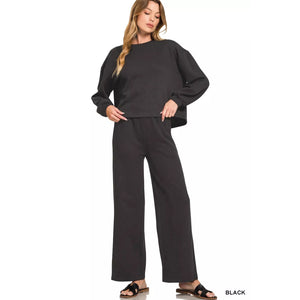 Elevate your loungewear collection with this stylish French rib pullover and pants set. The unique ribbed texture adds a touch of sophistication to this cozy set. Perfect for relaxed days at home or running errands in style. The matching pullover and pants make dressing effortlessly chic and put-together. Enjoy the comfort and fashion-forward look of this versatile set.