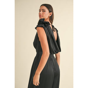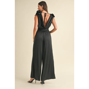 MABLE 3D Floral Applique Deep Cowl Neck Jumpsuit