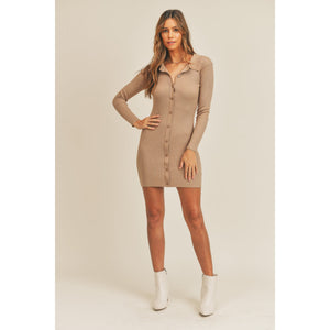 Button Up Ribbed Mini Shirt Dress is a stylish and versatile piece that can be dressed up or down for any occasion. The ribbed texture adds a touch of sophistication to the classic shirt dress silhouette. The button-up design allows for easy styling and a customizable fit. This dress is perfect for a casual day out or can be accessorized for a more polished look. Its mini length adds a fun and flirty touch to your outfit. Stay on-trend and effortlessly chic with this essential wardrobe piece.
