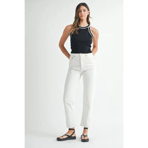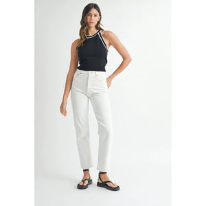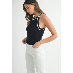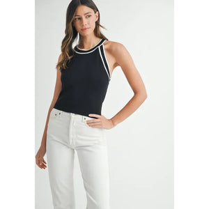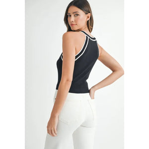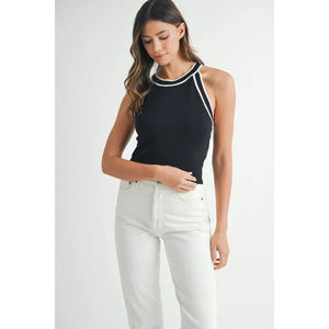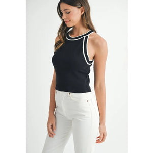 MABLE Contrast Trim Grecian Neck Cropped Tank