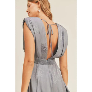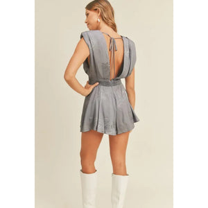 MABLE Draped Romper with Pleated Shoulder Pad Detail