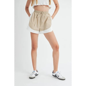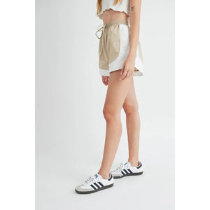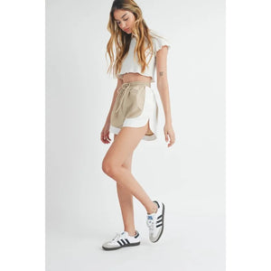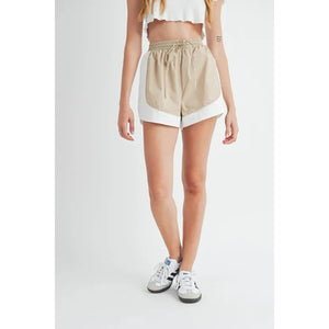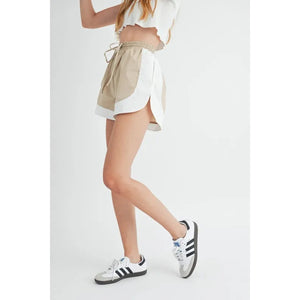 MABLE Drawstring Waist Contrast Trim Detail Shorts