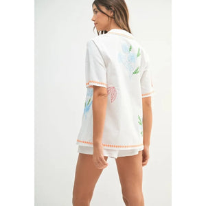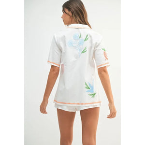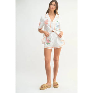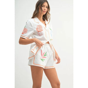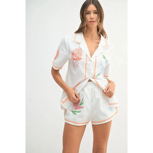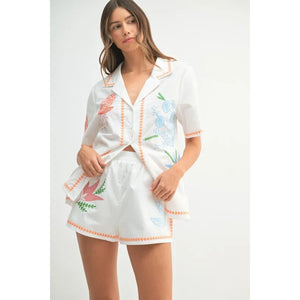 MABLE Embroidered Button Down Shirt and Shorts Set