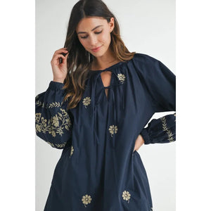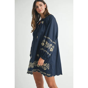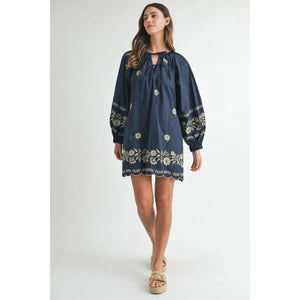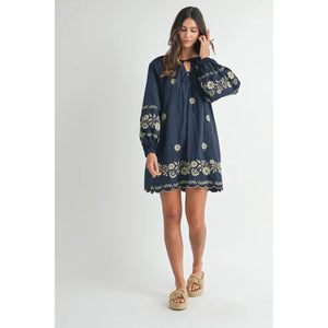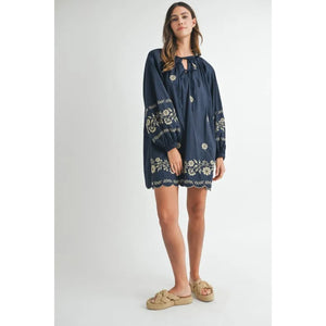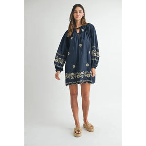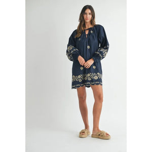 The Embroidered Long Sleeve Peasant Mini Dress is a perfect blend of bohemian charm and timeless elegance. Featuring delicate embroidery along the neckline and cuffs, this dress adds a touch of artistry to its flowing silhouette. The long sleeves and relaxed fit give it a comfortable, airy feel, while the mini length adds a playful twist. Crafted from soft, breathable fabric, it’s perfect for both casual outings and special occasions. Pair it with sandals or ankle boots for a laid-back yet stylish look that effortlessly captures the essence of carefree, modern fashion.