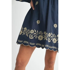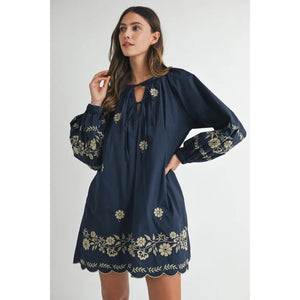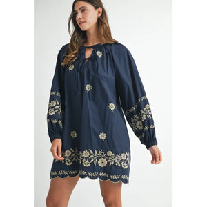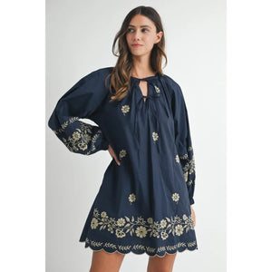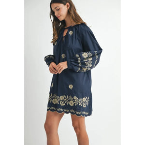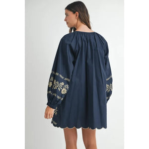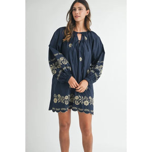 MABLE Embroidered Long Sleeve Peasant Mini Dress